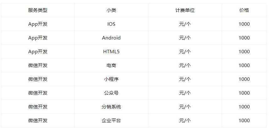 计费单位:元/个